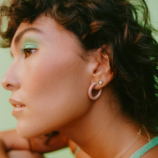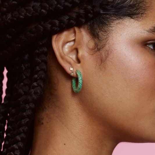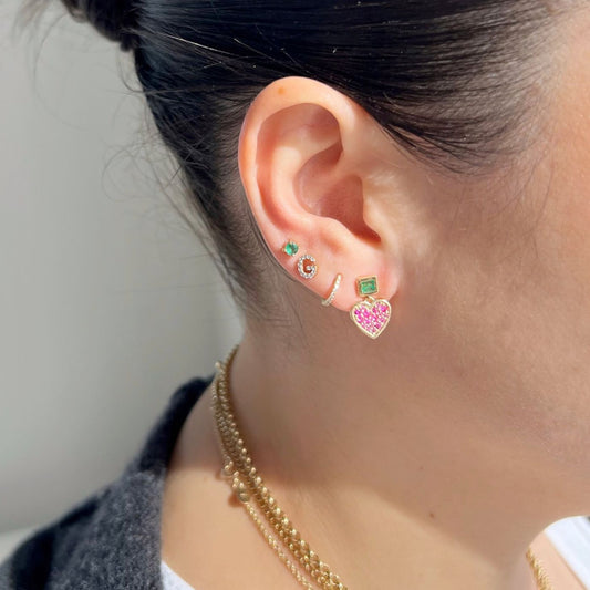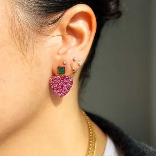 Deep Pink Sapphire and Emerald Small Sweetheart Earrings
