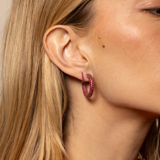 Deep Pink Sapphire and Emerald Jumbo Sweetheart Earrings