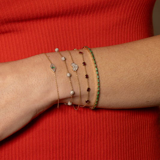 Pave Diamond and Emerald Baguette Evil Eye Bracelet