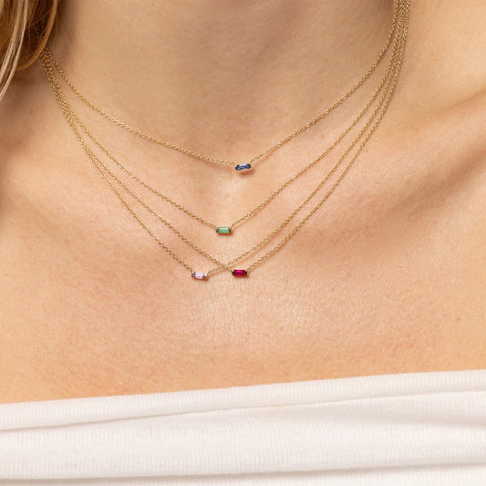 Pink Sapphire Baguette Staple Necklace