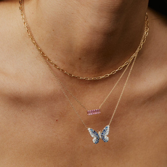 Mini Pink and Diamond Ombré Butterfly Necklace