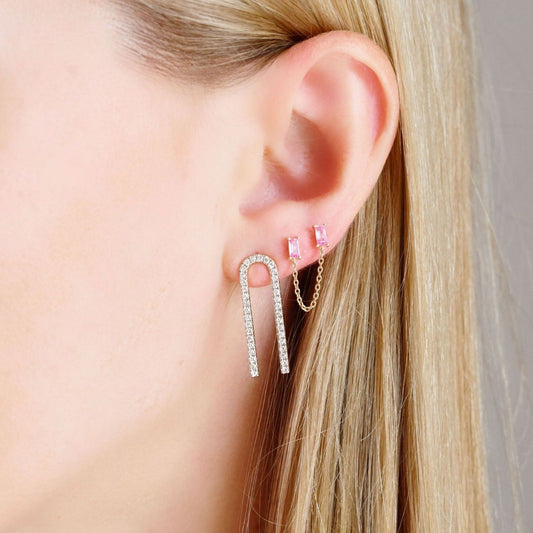 Pink Sapphire Baguette Chain Stud